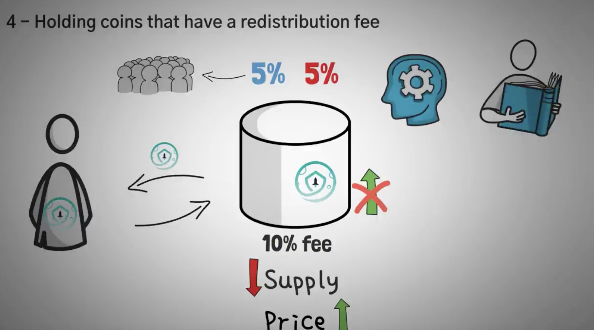 10%的交易费,其中一半即5%销毁,另外一半5%会补偿给持币的人群。