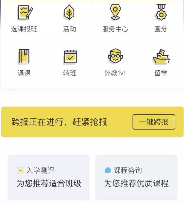 将APP的 家长方向植入了强营销概念,主推报课,产品推荐;设立家长学堂,教育家长帮助学生;